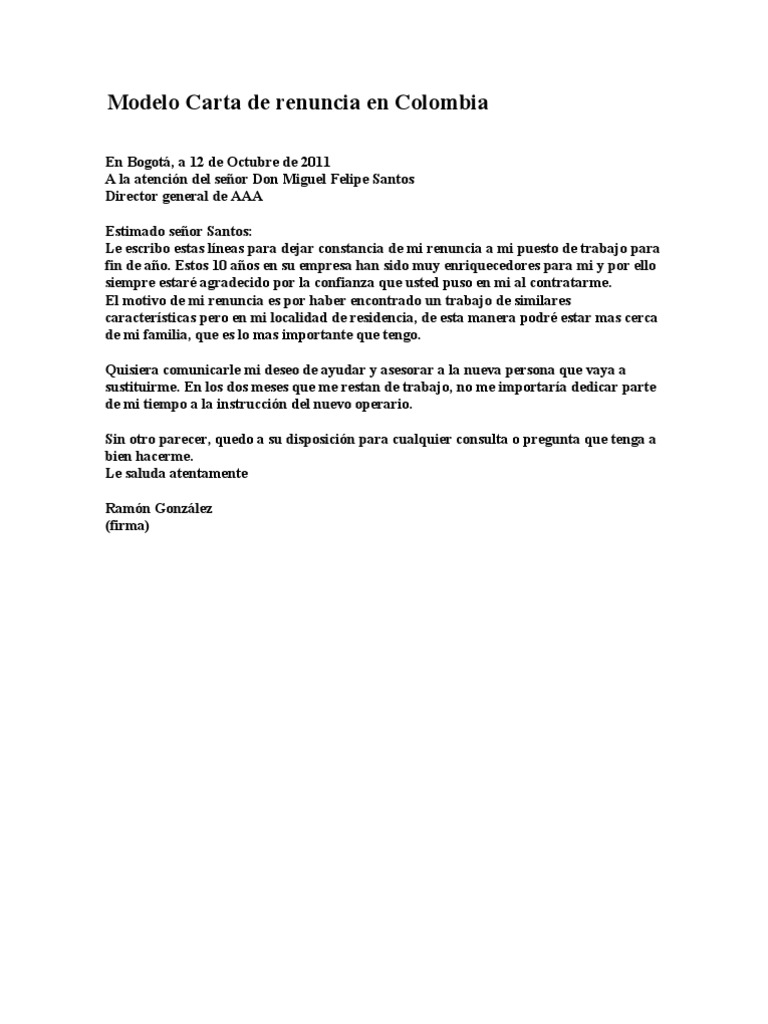 Modelo Carta De Renuncia En Colombia via es.scribd.com
